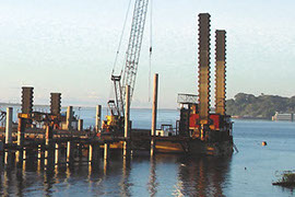 Para estas obras oferecemos diversos tipos de fundações especiais em presença de lâmina d´água, entre elas: cravação de estacas pré-moldadas, estacas tubulares metálicas, estacas prancha, estacas escavadas com camisa metálica perdida em solo ou engastadas em rocha com uso de circulação reversa.